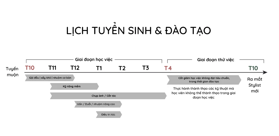 Tùy thuộc vào điểm kỹ năng học tập, manager sẽ đề xuất tăng một mức lương cơ bản trong thời gian học việc như một phần thưởng cho sự nỗ lực học tập của bạn. Nếu bạn đã thành thạo các kỹ năng cần thiết và trực tiếp phục vụ tốt khách hàng tại salon trong thời gian học ở học viện, bạn có thể được đề xuất tăng một mức lương cao hơn ngay lập tức khi bạn hoàn thành khoá đào tạo tại salon.