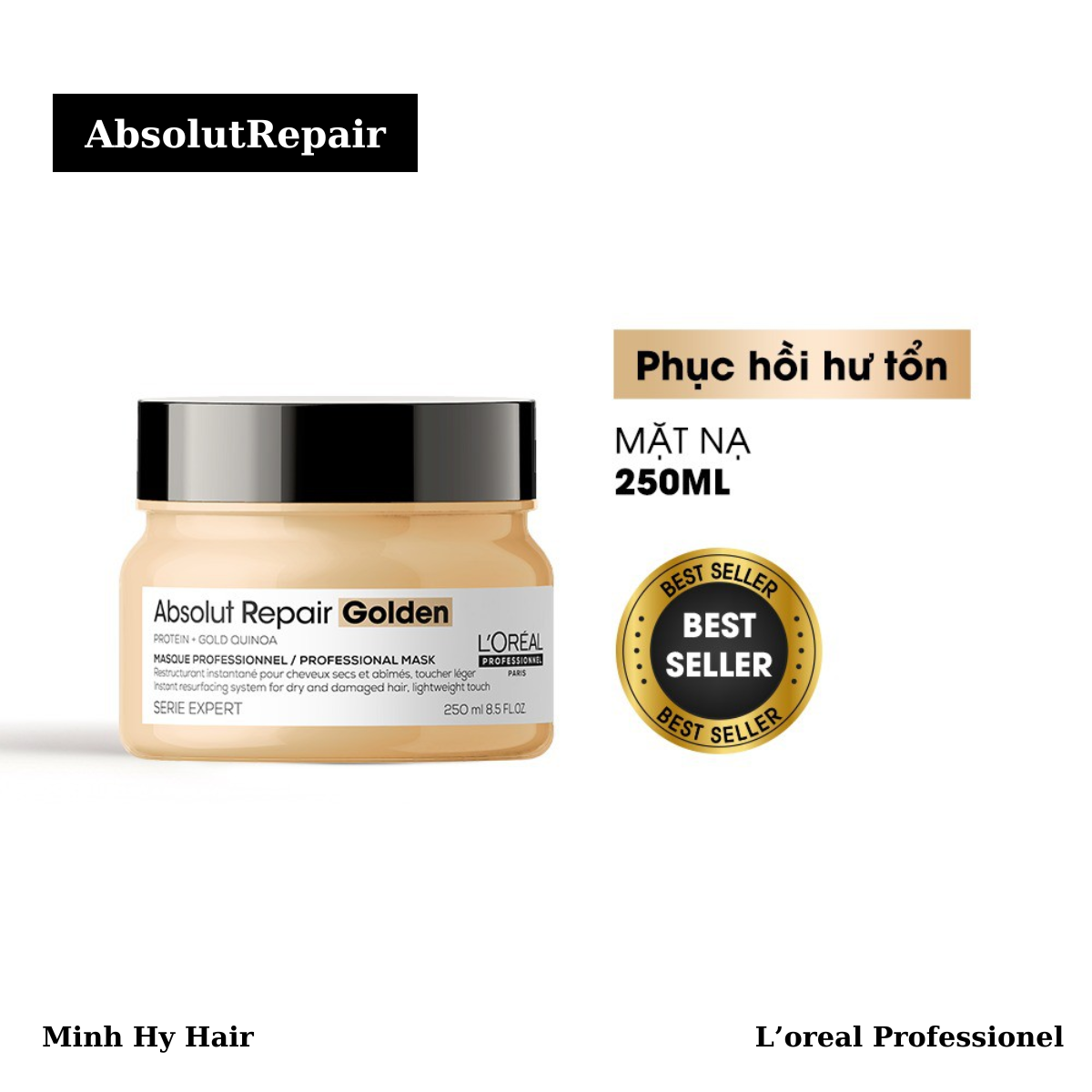 – Dầu hấp nhũ vàng phục hồi hư tổn toàn diện Absolut Repair Golden trả lại vẻ bóng mượt gấp 7 lần và phục hồi hư tổn đến 77%