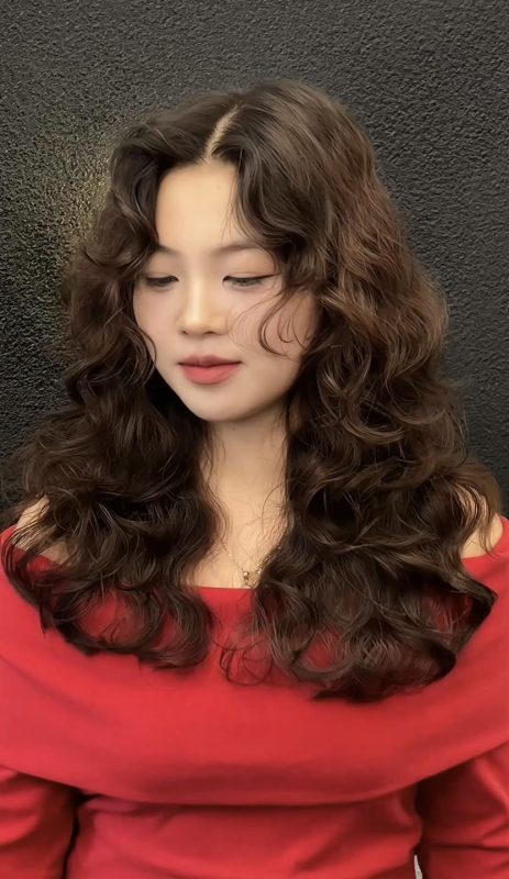 - Tóc được uốn xoăn sóng nhỏ, lọn to hoặc xù mì, tạo cảm giác bồng bềnh, tự nhiên.